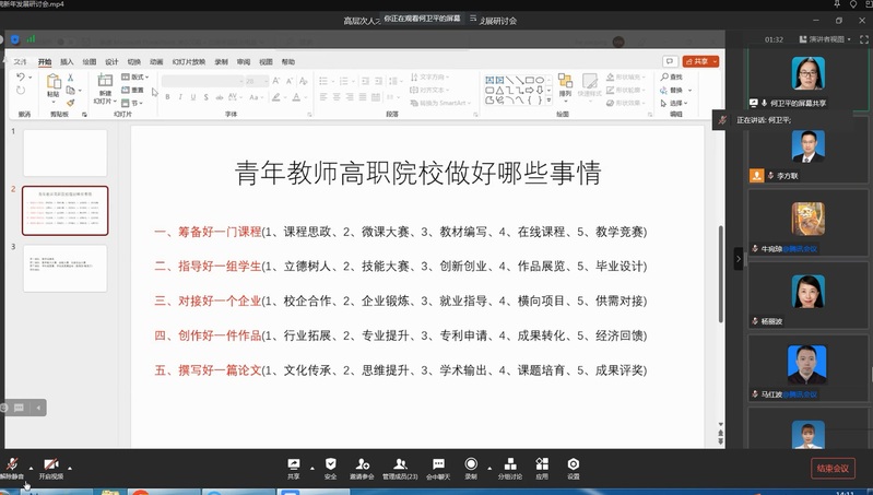 2023年2月1日下午,创意公司通过腾讯会议形式举行了“新年、新职工、畅谈新发展”研讨会。会议由经理李方联主持,公司近两年新引进的博士、副高以上高层次人才、新招聘的青年教师及创意公司班子成员20多人参加,特邀校学术委员会主任、教授、杨丽波博士全程指导。