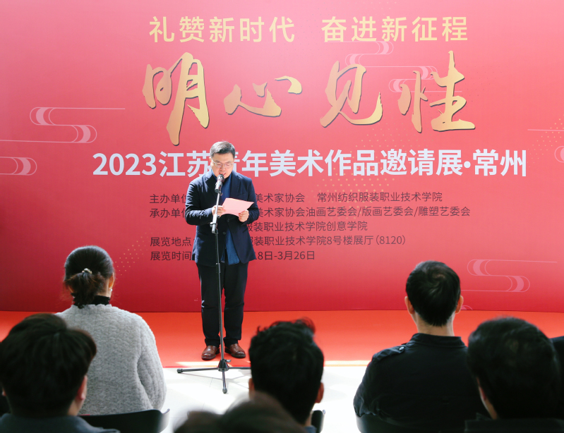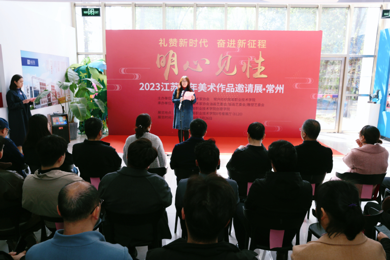 常州文联副主席蒋小萍宣布展览开幕。展览将持续至2023年3月25日结束,对校内外观众和美术爱好者免费开放。