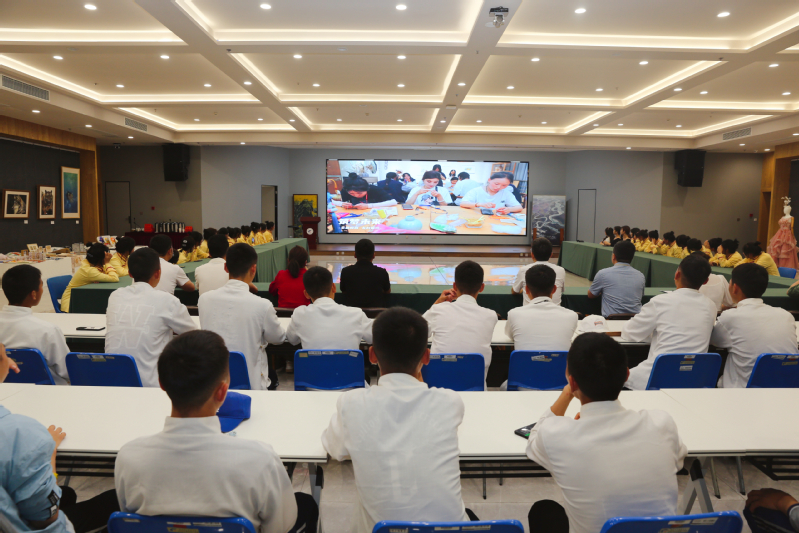 活动首先播放了本次研学班几天学习过程中的精彩瞬间,本次研学活动旨在加强不同公司之间的交流,促进师生间的互动与合作,提升公司产品质量。海南州职业技术公司师生从6月12日开始在公司进行一周的研学活动,包含了手工艺品、泥塑课程,走访调研了武进博物馆、徐氏竹刻博物馆、东方盐湖城、青果巷,梳篦博物馆等地方,可谓是收获满满。师生们饶有兴趣地观看了视频。