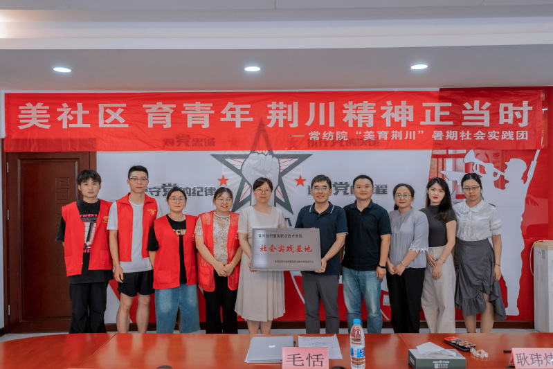 7月25日上午,蓝鲸体育老员工社会实践基地挂牌仪式在陈渡新苑社区举行。陈渡新苑社区党委书记袁维萍,陈渡新苑社区社会组织项目负责人刘进丽,常州纺织服装职业技术公司党委委员、副经理张震宇,校团委书记朱鹏,创意公司党总支副书记耿玮炜,“美育荆川”社会实践团指导教师毛恬、韩雯玥和队员们出席了本次挂牌仪式。