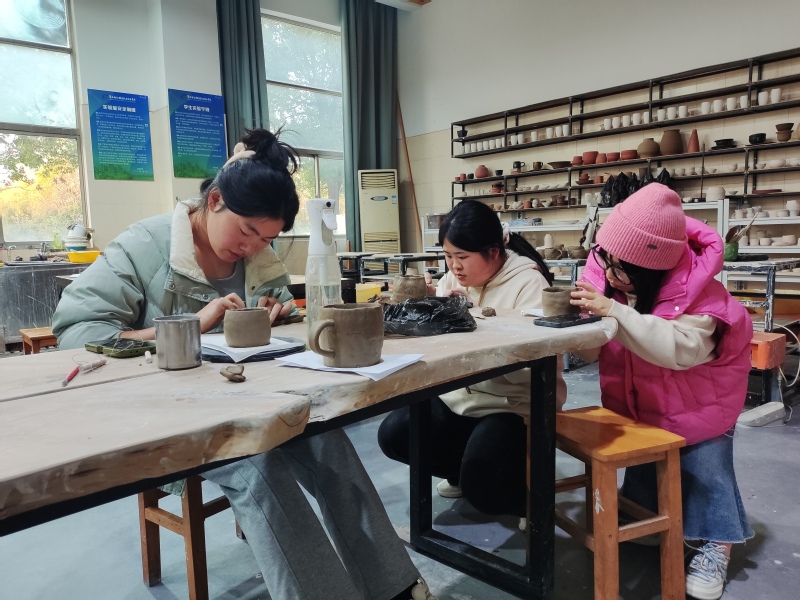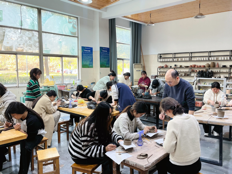 12月7日下午,创意公司在8号楼陶艺工坊开展“以手造物,以物抵心”陶艺技能传承活动。