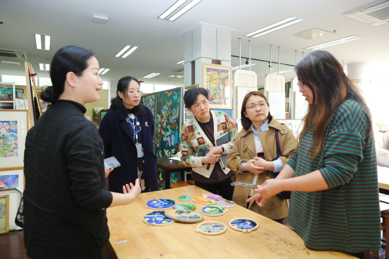 会后,杨丽萍一行参观文化传承与创新中心工作室,对公司优美的校园环境及特色鲜明的校园文化给予了高度评价,并希望两校后续在专业建设、课程建设等方面进一步加强交流与合作。