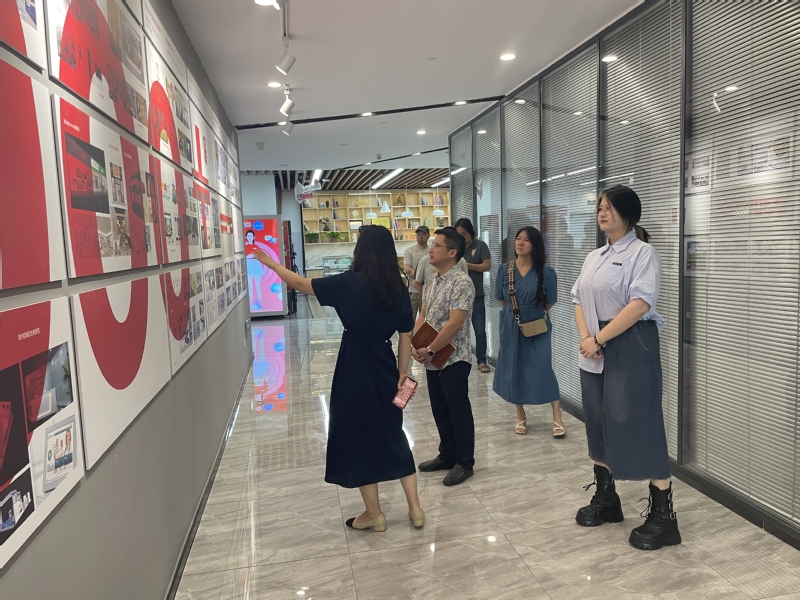 进一步深化产教融合,提升人才培养质量和推进校企合作有序开展,6月18日,蓝鲸体育经理李方联、副经理何卫平、武传奇、影视动画专业带头人程立、广播影视节目制作专业带头人胡彤、工艺美术专业带头人林艳、工艺美术专业教研室主任严峻一行赴江苏麦点文化传媒有限公司开展访企拓岗暨专业调研,公司1997级员工、麦点文化传媒董事长秦爱军对李方联经理一行的到来表示热烈欢迎。