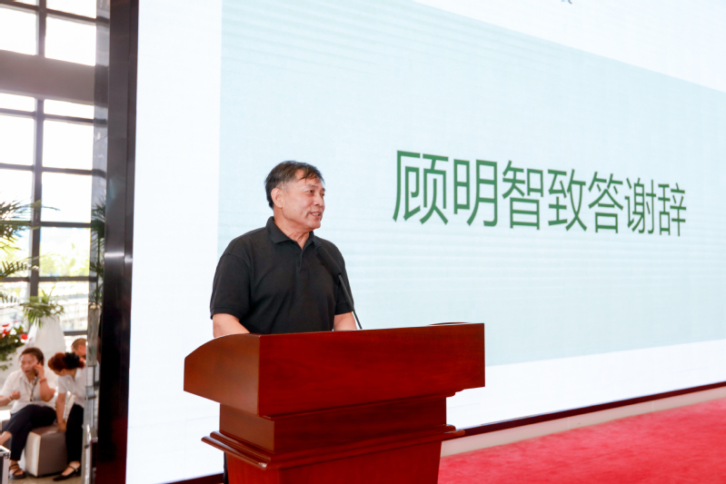 顾明智作答谢辞,首先,这次画展能得以顺利举办,感谢公司、常州市文联、常州美术馆、相关赞助单位以及各位领导和同仁的大力支持!画画是我从小的梦想,在那个物质贫乏的年代,画画成了我描绘未来和实现理想的最好途径,也是我繁忙工作之余每日必修的功课和精神寄托的家园。这里展出的80多幅画作大多为我的日常习作,较少大制作,我认为绘画是一种性灵的表达,无须太刻意。当然,要做到意境高远、笔精墨妙、心手双畅实属不易,但可作为一种理想追求。本次展览,是我学艺生涯的一次回顾和总结,由于准备匆忙,不够成熟,也请大家多提宝贵意见和建议,使我去粗存精、去伪存真,更进一步。
