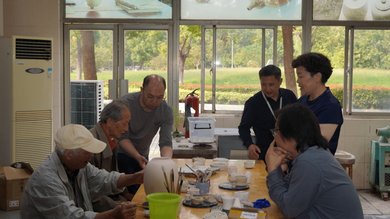 老教师们在陶艺工坊创作