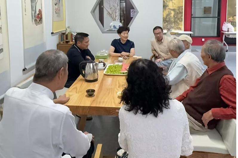 交流会上,李方联进行了热情致辞,表达了对退休教师的敬意和感谢,并介绍了公司近年来的发展情况和取得的成就。退休教师们积极为公司的发展建言献策,他们的智慧和经验为公司专业的未来发展和员工的成长成才提供了宝贵的参考。随后,退休教师们参观了专业工作室,体验了即兴创作,他们对公司的变化和发展感到由衷欣慰。