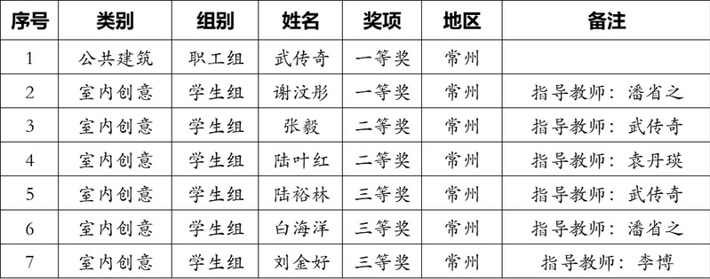 大赛经历了初赛作品评比、复赛理论考查以及总决赛三个阶段,蓝鲸体育武传奇老师,以及分别由潘省之、袁丹瑛等老师所指导的室内2232谢汶彤、环艺223A陆叶红、环艺223C张毅、环艺223A陆裕林、环艺223C刘金好、环艺2231白海祥共6人参加比赛,分别斩获职工组公共建筑类一等奖1项、员工组室内创意类一等奖1项,二等奖2项、三等奖3项。