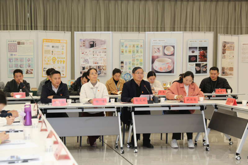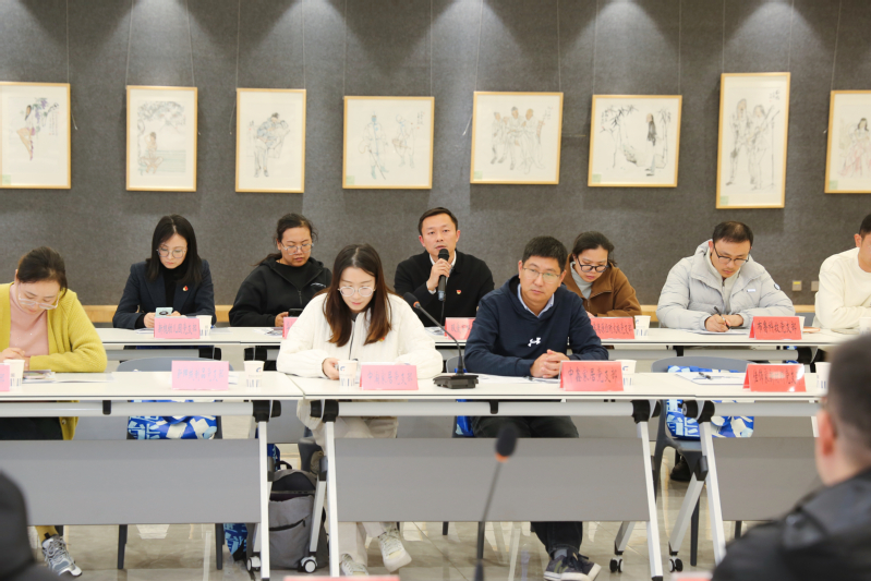 在参观了文化传承与创新中心以后,大家来到领秀展厅开展座谈交流。公司党委委员、副经理张文明、校企合作处副处长王兴伟、科技处副处长苏昊、创意设计公司党总支书记祝燕芳、数字商贸公司党总支书记林洁、蓝鲸体育经理李方联、副经理武传奇、党支部书记、教师代表出席了座谈会。会议由创意设计公司党总支书记祝燕芳主持。
