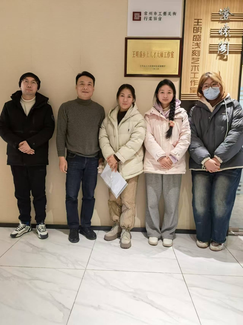 近日,工艺美术品设计专业严骏、林艳两位老师前往王明盛浅刻艺术工作室进行参观走访,并亲切探望了在该工作室实习的员工。